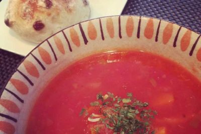 今朝の朝食は「セロリいっぱいのミネストローネ」