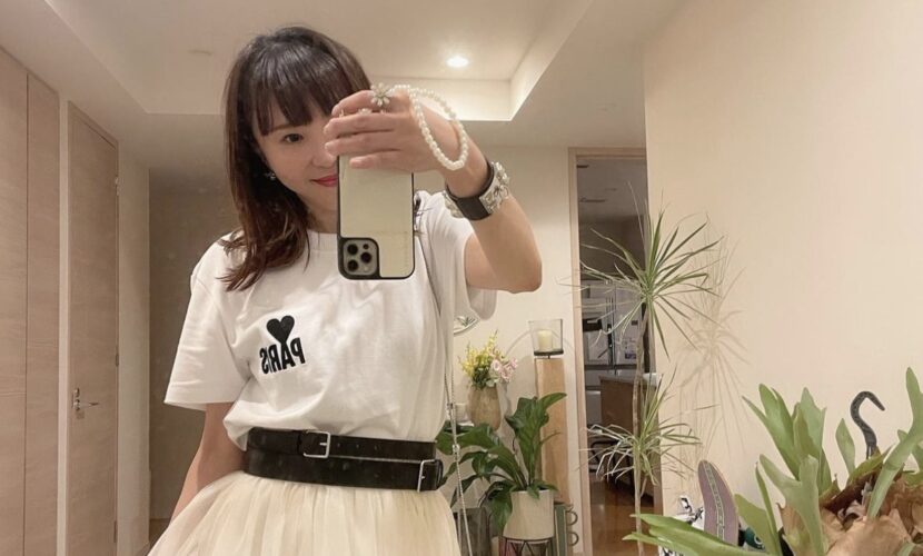 白のロングチュールスカート。