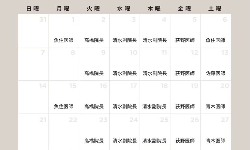 ↑4月のドクター出勤日カレンダー↑