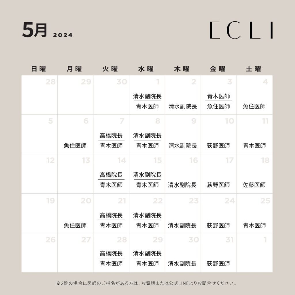 ↑5月のドクター出勤日カレンダー↑