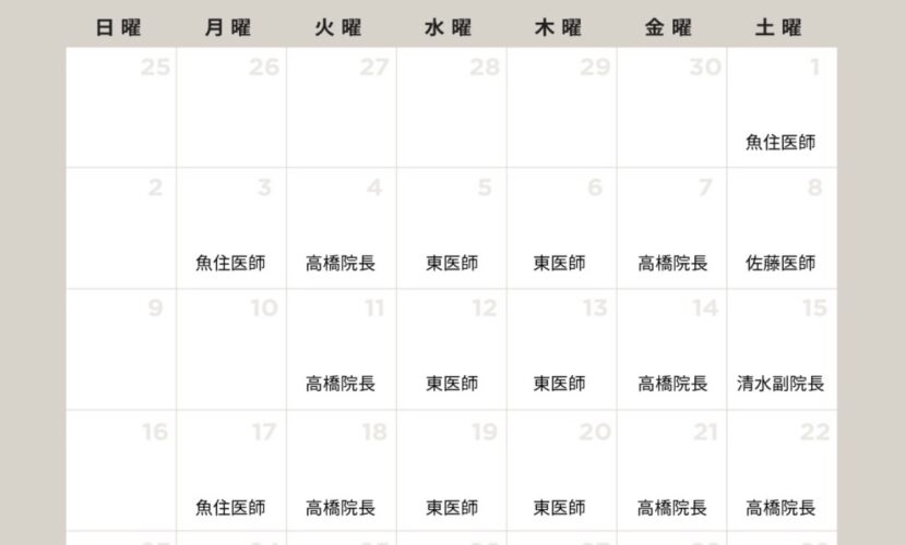 ↓7月のドクター出勤日カレンダー↓